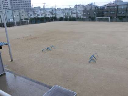 グラウンドで生徒たちの声が聞こえていたと思っていたら、突然の激しい雨が落ちてきました。