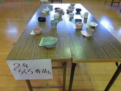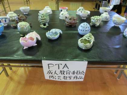 PTAの皆様の陶芸作品、生徒たちの美術作品も並んでいます。