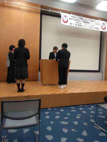 授賞式では、本校の坂本くんが、大阪府知事賞に輝きました。