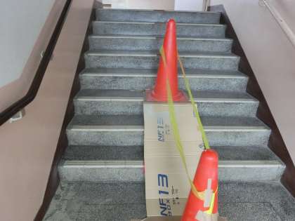 管理作業員さんの手で、階段タイルの修理が進んでいます。 ありがとうございます。