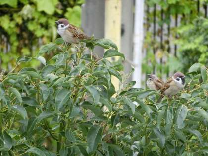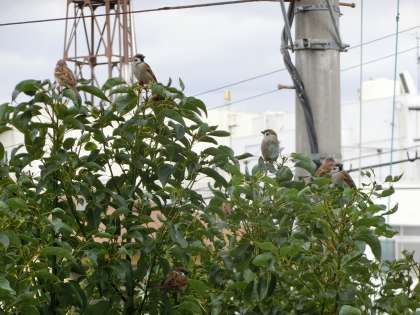 静かだった中庭が、スズメの鳴き声で騒然と!