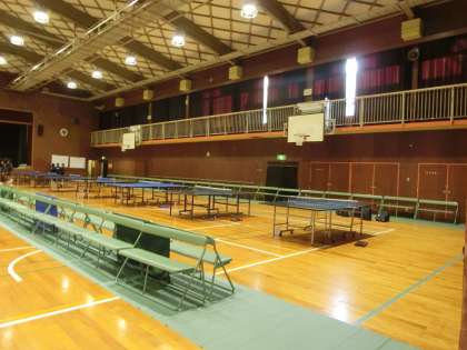 本日、体育館では卓球の試合が行われます。