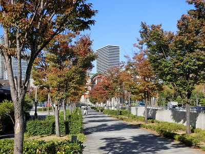普段のビジネス街も、休日には秋が感じられます。