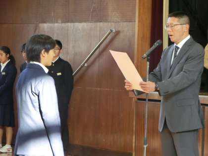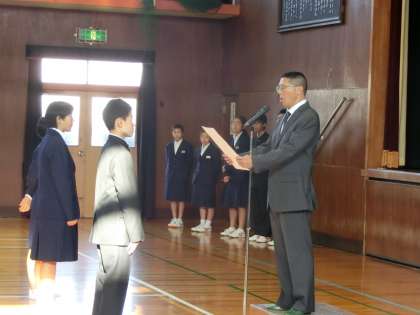 前回の集会では「ブレザー」についてお話しました。男子の詰め襟も含めて、これから半年以上お世話になる冬服。丁寧に扱い、キレイに着こなしてください。