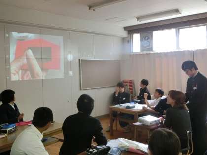 お手本で、実技の指導を示しながら、わかりやすく映像による説明も行われています。