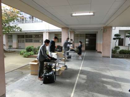 今朝は、玄関で「防寒着」である「Vネックセーター」、「ウィンドブレーカー」の販売が行われました。