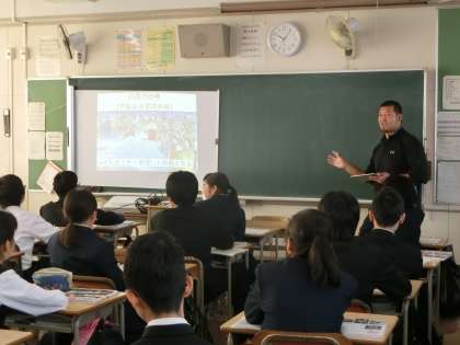 タブレットとプロジェクターを駆使し、写真やプリント資料を映し出して、わかりやすく説明しています。