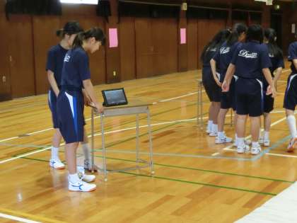 本日は、タブレットを使って、自分の飛ぶ姿、形を確認しています。