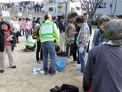 万領会館と南万領公園で訓練が行われました。