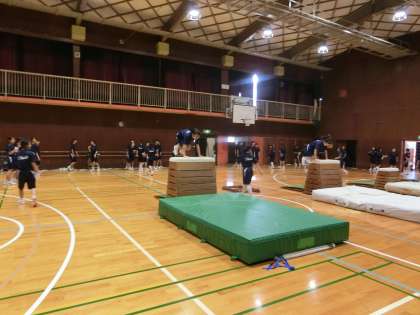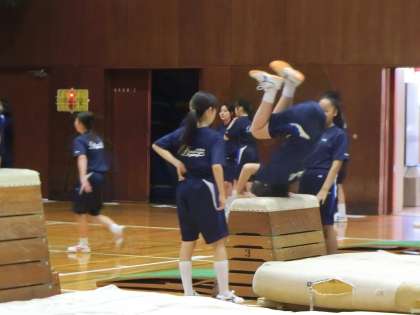 体育館で器械体操。「跳び箱」分野です。
