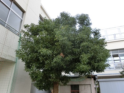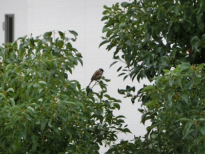 お隣の田んぼの影響か?と思っていたら、お目当ては、中庭のはずれの「くすのき」でした。