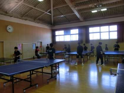 格技室では、卓球部が練習しています。