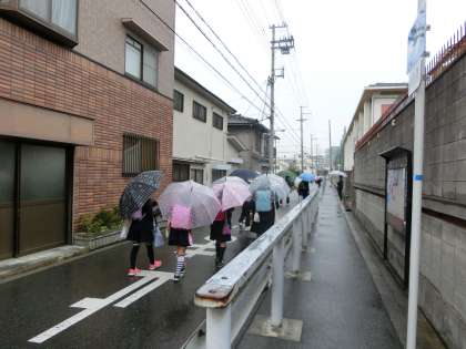 雨の降る中ですが、児童さん、生徒たちは元気に登校しています。