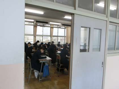 緊張感が漂う中、みんな真剣に問題に取り組んでいます。
