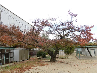 歴史を物語る大きな桜の樹木。紅葉がすすんでいます。