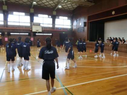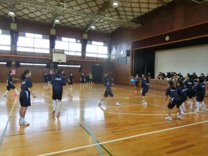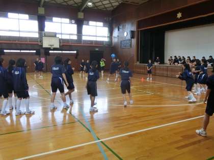 体育館を使って、男女別のドッヂボールを行っています。
