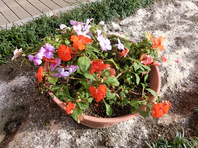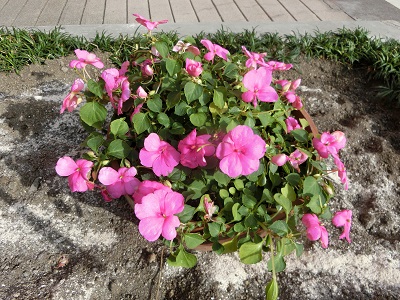管理作業員さんの手によって、花の鉢植えが飾られています。