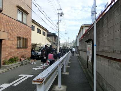 素晴らしいお天気の中、児童さん、生徒たちが登校してきました。