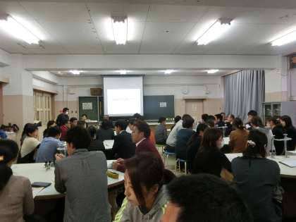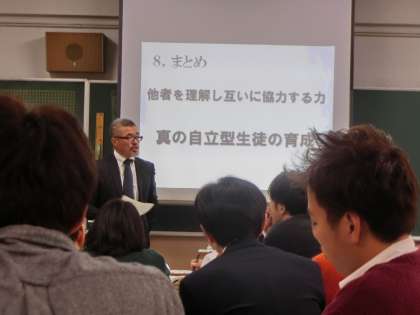 「身近な平和って?」と題して、三年間の「集団考動」「リーダー育成」「平和学習」などの取り組みを柱に、修学旅行や文化発表会を成功させた、素晴らしい取り組みが報告されました。