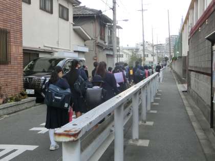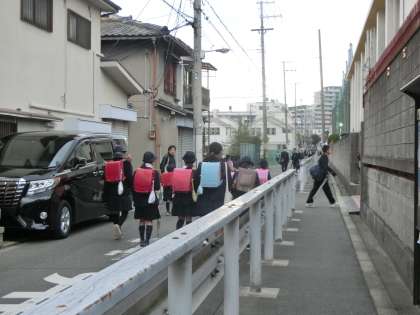 少し肌寒い中、児童さん、生徒たちが登校してきました。