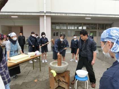 臼取りが難しい。熱いもちを、のばしたり、たたんだり、ひっくり返えしたり・・・。