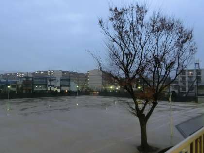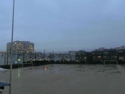 かなりの量で、グラウンドには大きな水たまりが・・・。