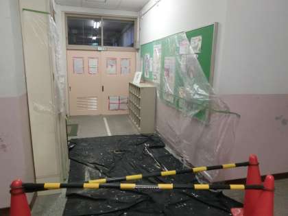 昨日、管理作業員さんの手によって、保健室の扉が美しくなりました。