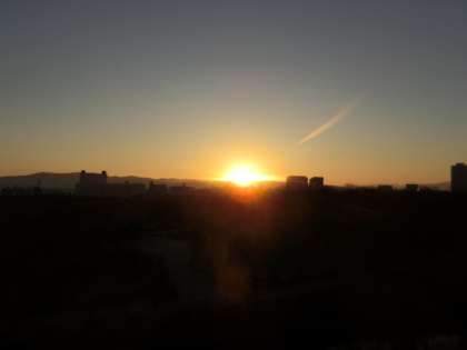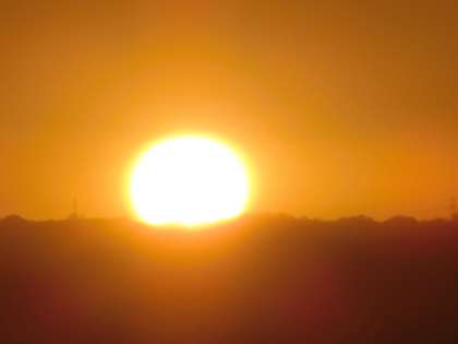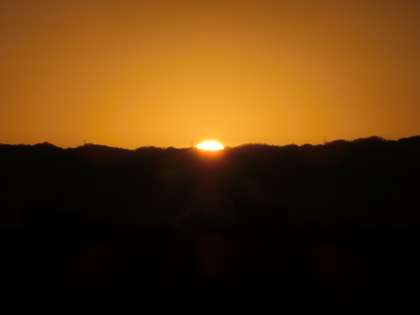 午前7時10分過ぎ、信貴山付近に太陽が顔を見せ始めました。