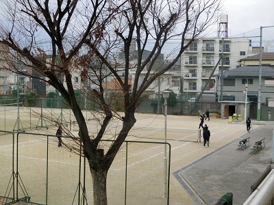 太陽が照らない寒空のもと、テニス部が練習を頑張っています。