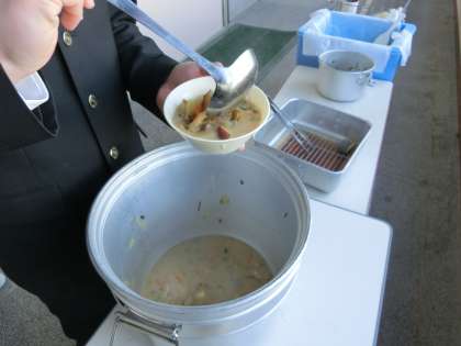 味噌汁は、さつまいもやうす揚げなど、とても具だくさん。