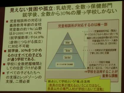 大阪府立大学の山野先生より、子どもの貧困について、学校の役割と課題についてお話しいただきました。
