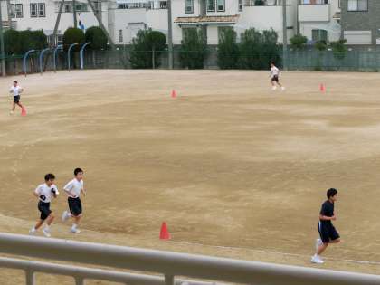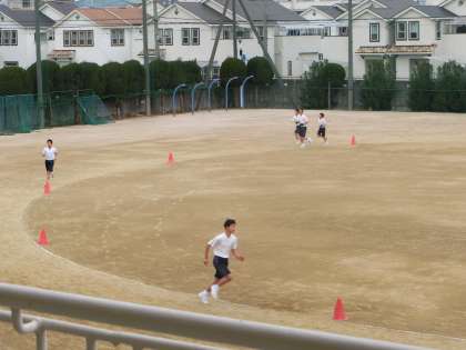 長距離走です。自分の体力との闘い。みんな頑張っています。