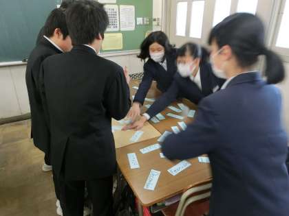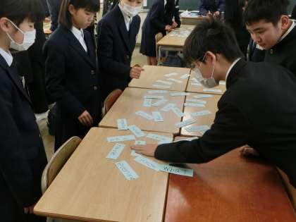 1年生では、手作りの「英語カルタ」に挑戦しています。
