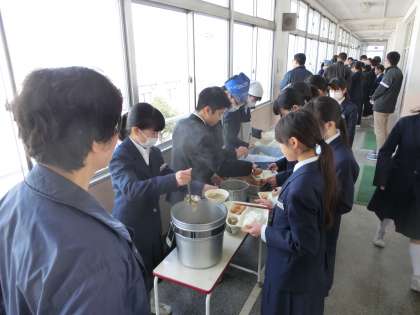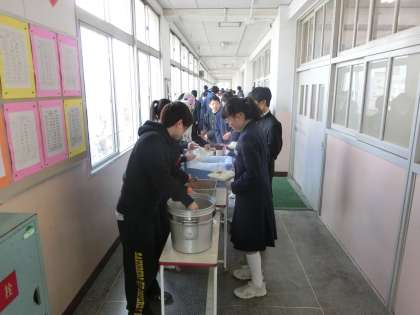 午前中の授業が終了し、給食の準備が始まりました。