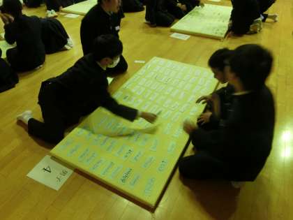 本日、格技室において、1年の英語カルタ大会が行われました。