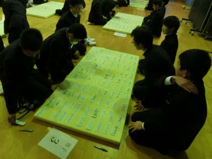 手作りのカルタ。これまで習った英単語が散りばめられています。