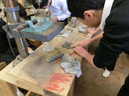 紙やすりなどを使って、みんな必死でこすっています。