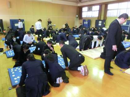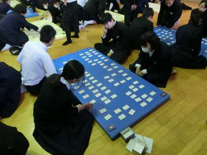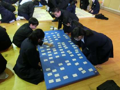 かるたの得意な生徒も、苦手な生徒も、みんな目の色を変えて楽しんでいます。