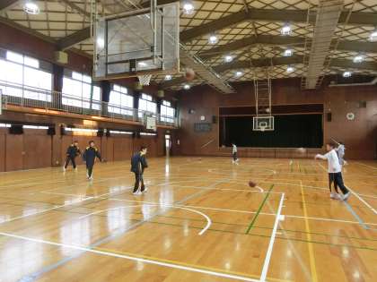 今朝もバスケット部が、冷たい体育館で練習を行っています。