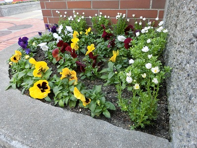 今日もパンジーたちが生徒を迎えてくれています。