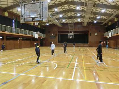 今朝もバスケットボール部が、張り切って練習をしています。 シュート力をしっかり磨いてください。