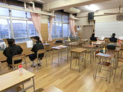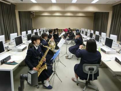 音楽室、パソコン室などで、吹奏楽部が練習しています。