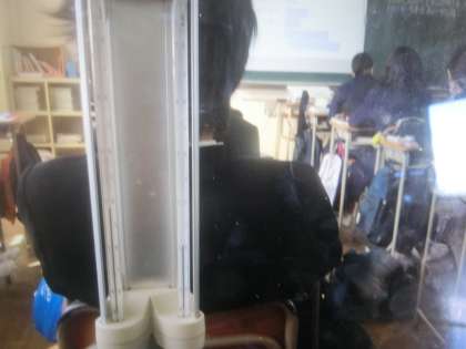 本日、学校薬剤師様のお力で、教室の内の空気環境検査、照度・眩しさ検査を行いました。