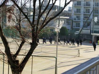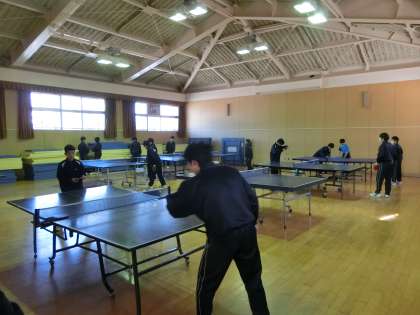 グラウンドではテニス部、格技室では卓球部、体育館ではバドミントン部が練習しています。