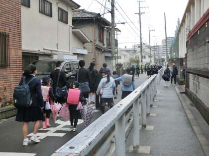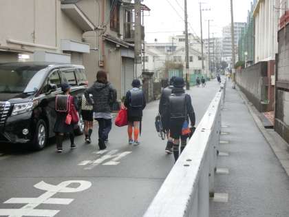 今日も元気良く、児童さん、生徒たちが登校してきました。