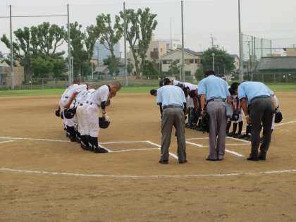 野球部は3年生6人、1年生9人で活動しています。3年生最後の夏の大会では勝利を目指して練習に励みましたが、初戦で負けてしまいました。今は、新チームとなり、1年生9人で秋季大会に向けて練習を続けています。