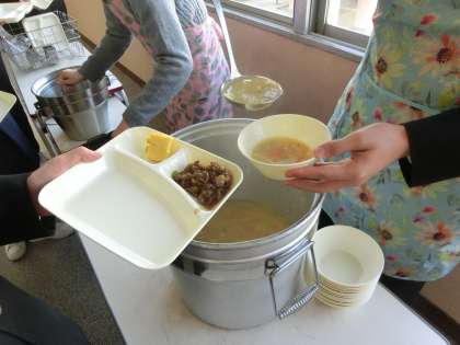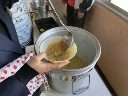 3年生も、コーンスープは人気。