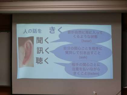 最初に、「話を聞く、訊く、聴く」ことの大切さを学びました。