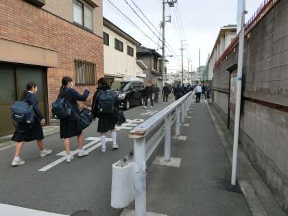 今朝も元気良く、児童さん・生徒諸君が登校してきました。