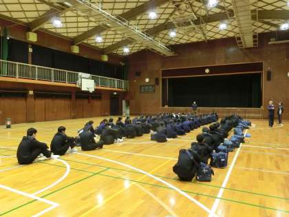 緊張が漂う中、学年主任や進路指導主事の先生から注意事項などがあり、高まる気持ちを整えました。